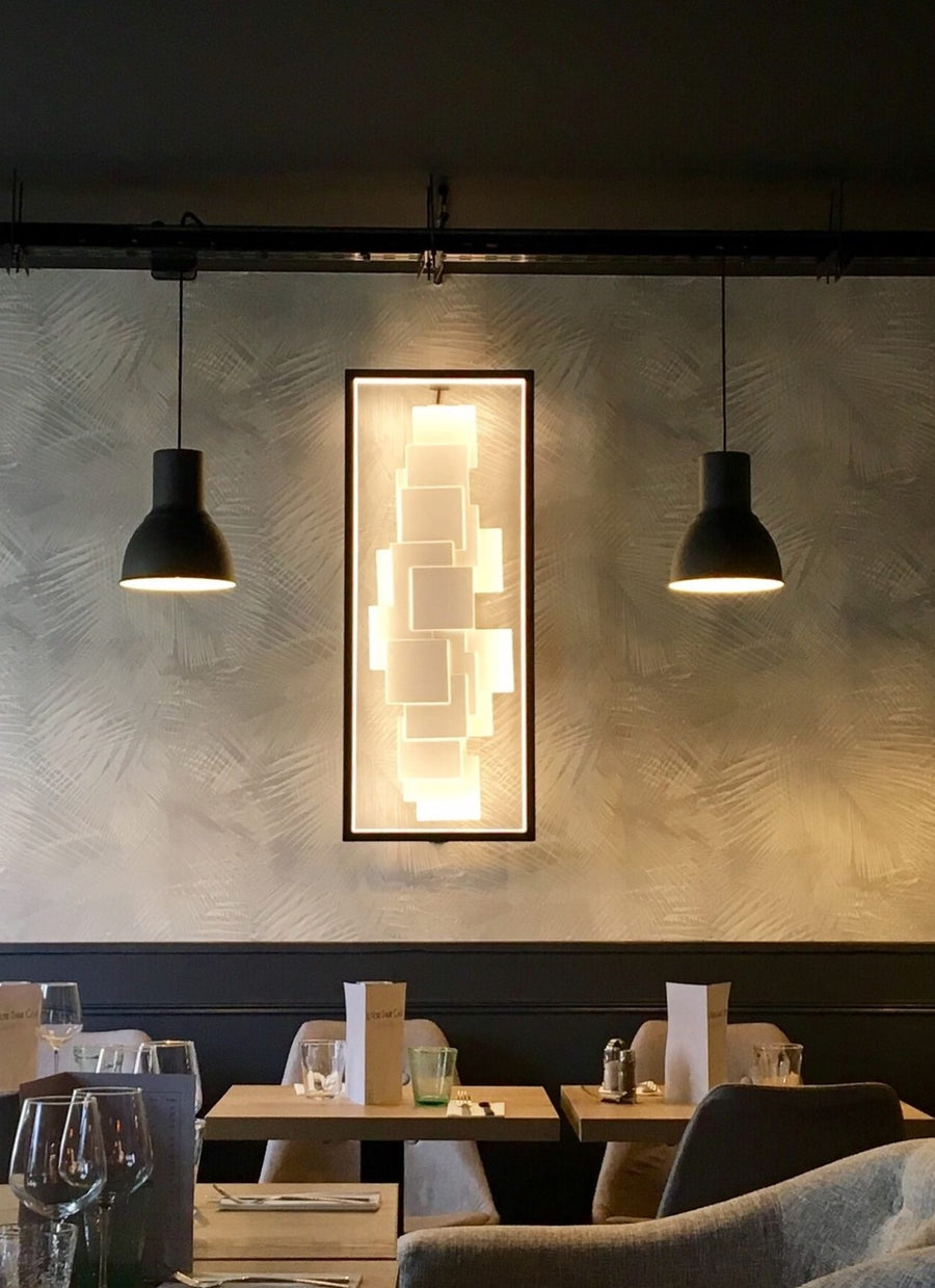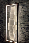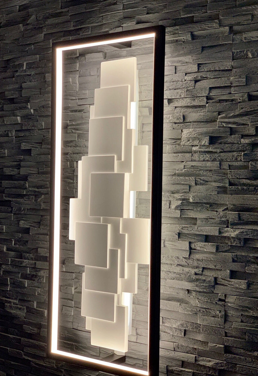 Luminaire LED avec sculpture en pierre Olycale® blanche.