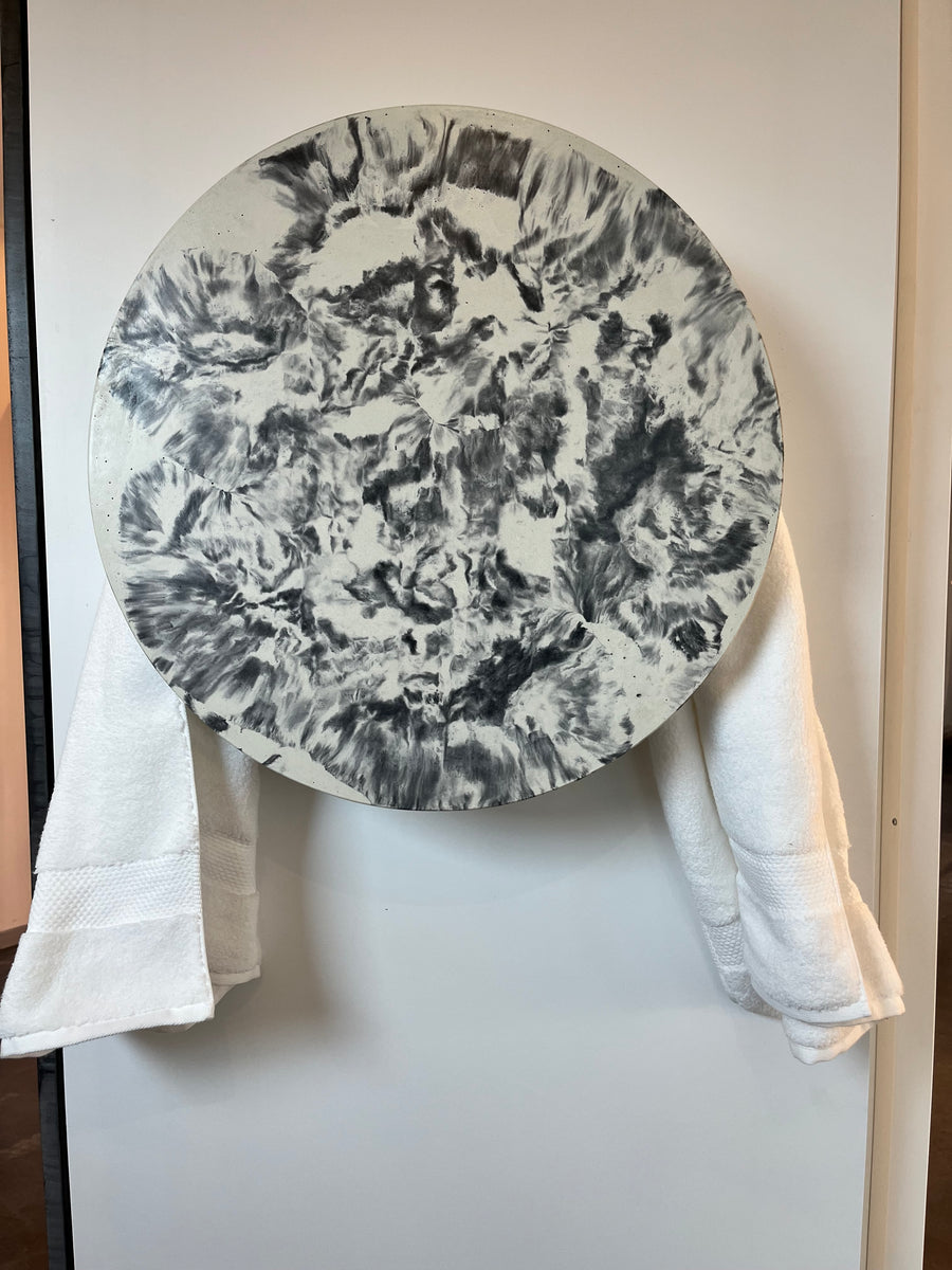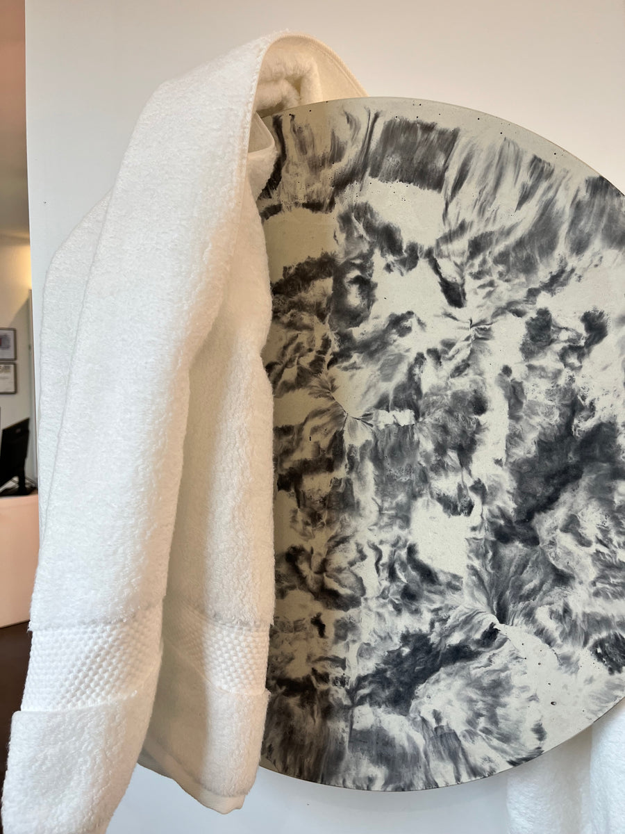 En pierre olycale créée par l'artiste Johanne Cinier, Orbéo diffuse une chaleur douce et enveloppante, parfaite pour des serviettes toujours agréables au toucher.