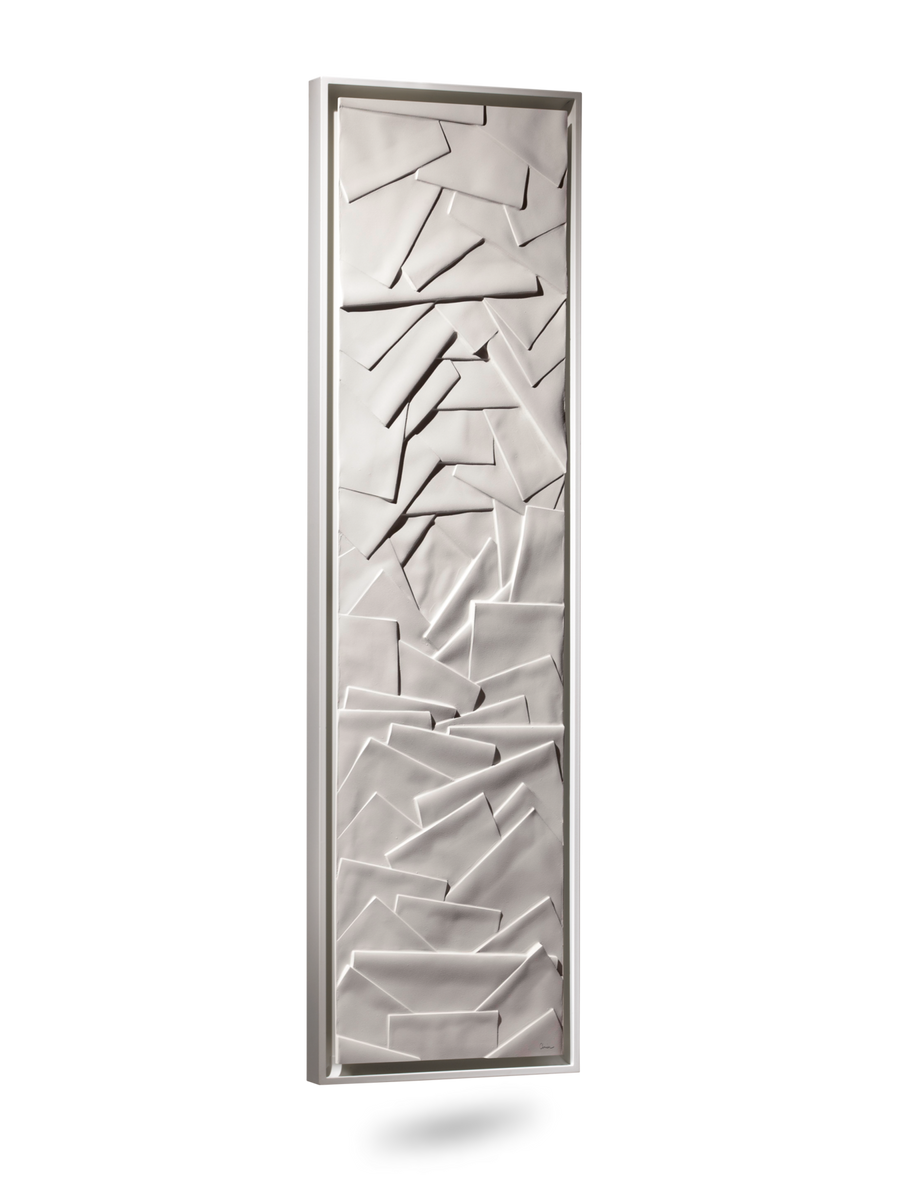 Création sur l’esprit Zen japonais entre le 16ème et le 18ème siècle, EDO, ancien nom de la capitale Tokyo, représente un jeu de superpositions déstructurées, rehaussées par le jeu d’ombre et de lumière et la profondeur du blanc Olycale®.