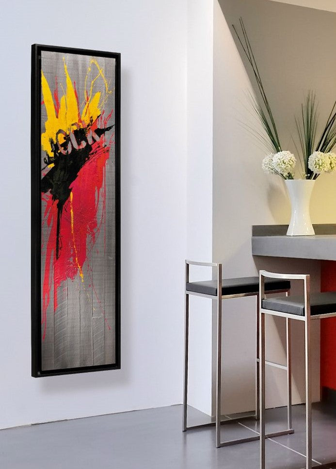 Explosion de couleurs électrisées pour une signature tagée très contemporaine, inspirée des murs newyorkais, symboles décalés d’une énergie créative.